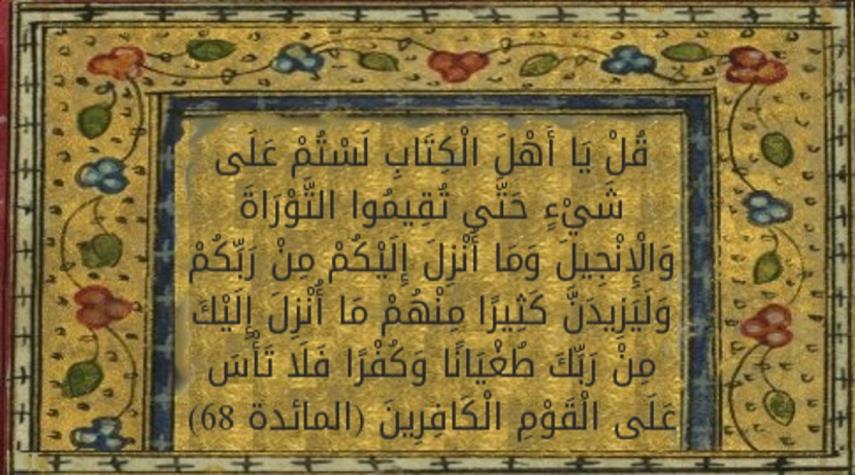 القرآن الكريم-الكوثر: {قُلْ يَاأَهْلَ الْكِتَابِ لَسْتُمْ عَلَى شَيْءٍ حَتَّى تُقِيمُوا التَّوْرَاةَ وَالْإِنْجِيلَ وَمَا أُنْزِلَ إِلَيْكُمْ مِنْ رَبِّكُمْ}(المائدة - 68).