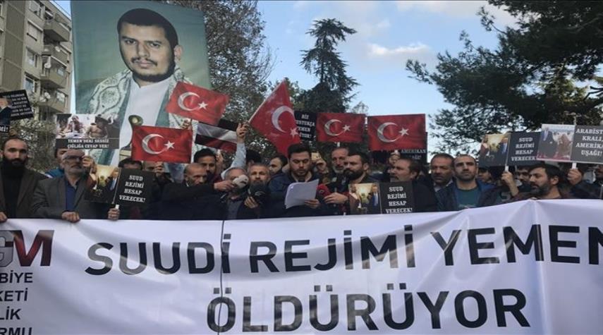 اليمن - الكوثر: شارك العشرات، الأحد، في مظاهرة أمام قنصلية الرياض في إسطنبول، للمطالبة بوقف الحرب الدائرة في اليمن والتي تشارك فيها السعودية بقيادتها لتحالف العدوان.