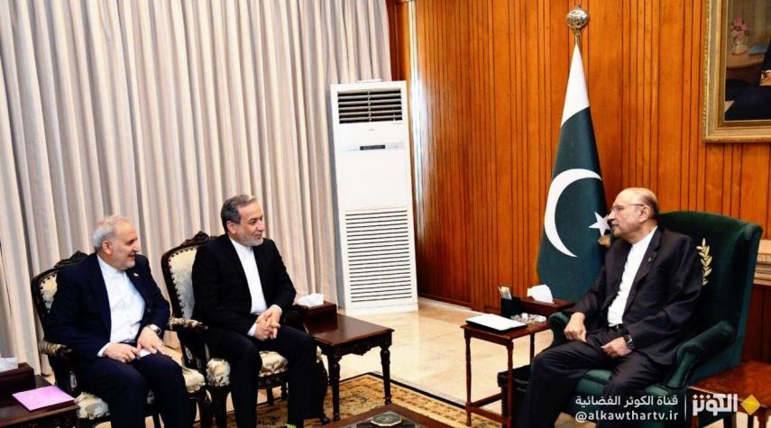 دان الرئيس الباكستاني "آصف علي زرداري" ووزير خارجية الجمهورية الإسلامية الإيرانية "عباس عراقجي"، خلال لقائهما في إسلام آباد، استمرار جرائم الكيان الصهيوني ضد أهالي غزة وناقشا خلال هذا اللقاء العلاقات الثنائية والتطورات الإقليمية.