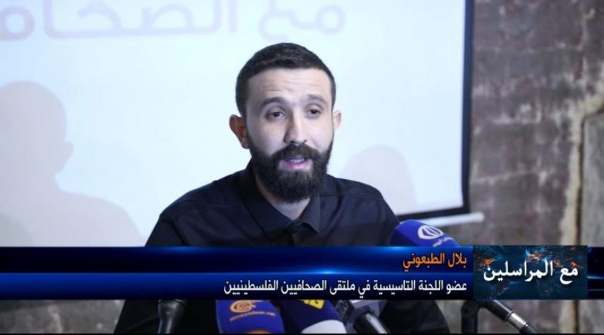 بمناسبة اليوم العالمي للتضامن مع الصحفي الفلسطيني أقامت لجنة دعم الصحفيين وملتقى الصحفيين الفلسطينيين لقاء اعلاميا تضامنيا في قاعة جريدة السفير في بيروت.