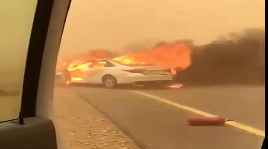 السعودية - الكوثر: شهدت منطقة جيزان جنوب السعودية يوم امس الثلاثاء حادث مروري مروع جراء موجة الغبار الشديدة التي اجتاحت المدينة وتسببت بانعدام الرؤية بشكل كامل .
