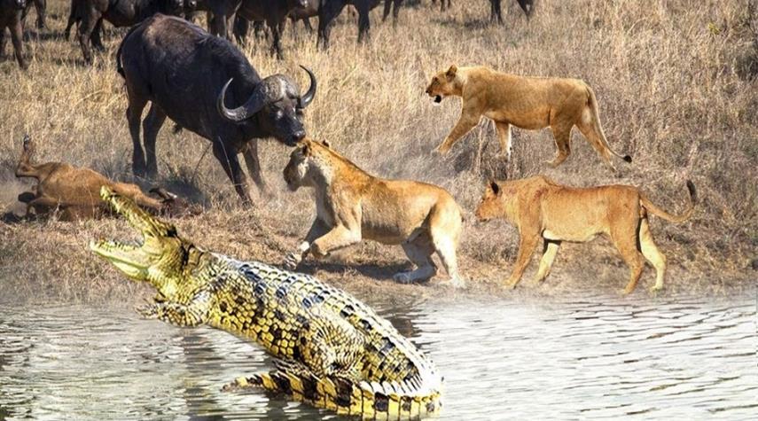 شاهد بالفيديو... أفلت من التمساح فوجد الأسود في انتظاره
