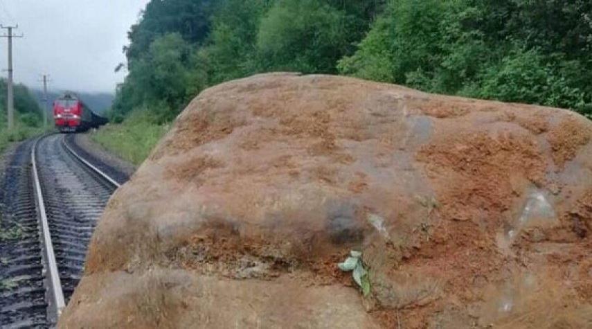 صخرة تزن 16 طناً تستقر على خط للسكك الحديدية في روسيا