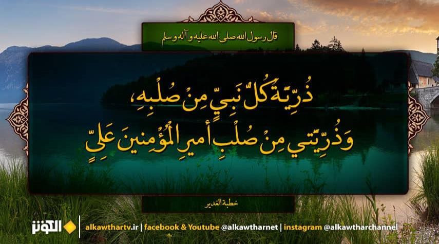 قال رسول الله (ص): ذُرِّيَّـةُ كُلُّ نَبِـيٍّ مِنْ صُلْـبِهِ وَذُرِّيَّتـي مِنْ صُلْبِ أميرِالْمُؤْمِنينَ عَلِيٍّ...