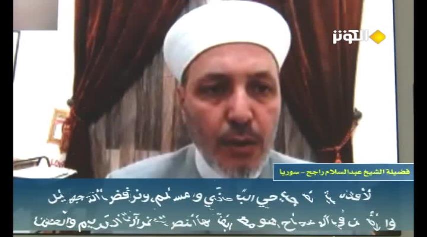 تحدث الشيخ عبدالسلام راجح من سوريا عن لزوم مطابقة السنة للقرآن الكريم وأن لا يوجد هناك قدسية لصحيحي البخاري ومسلم..