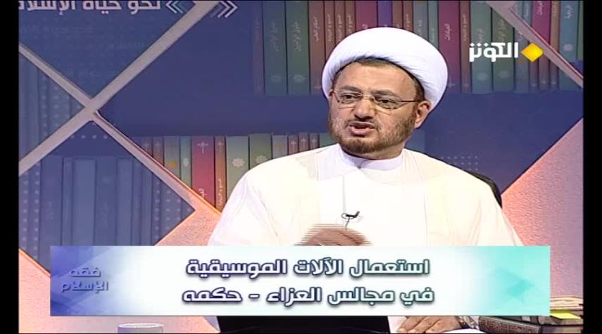 فقه الاسلام - الكوثر: بين الشيخ اسد محمد قصير في برنامج فقه الإسلام على قناة الكوثر الحكم الشرعي لاستعمال الآلات الموسيقية في مجالس العزاء .
