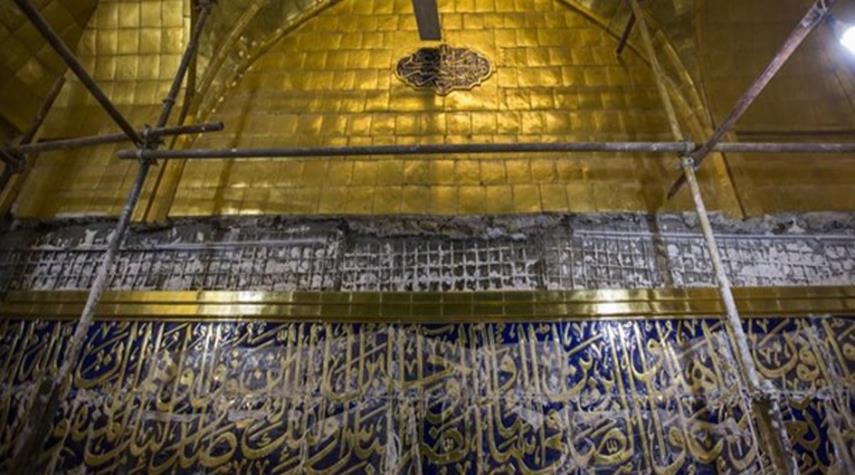 نقش آيات قرآنية على ايوان مرقد العباس (ع) بأيدي ايرانية