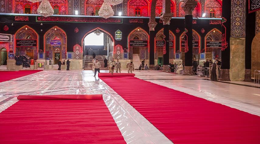 لهذا السبب تم فرش مرقد الامام الحسين بـ(6250) متر من السجاد الاحمر ونشر الاتربة في مداخله