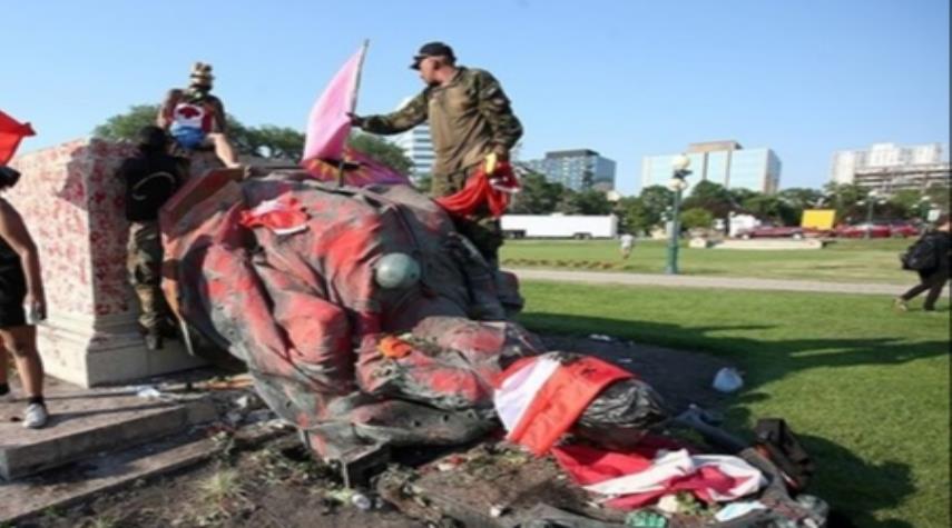 إسقاط تمثالين للملكتين فيكتوريا وإليزابيث في كندا