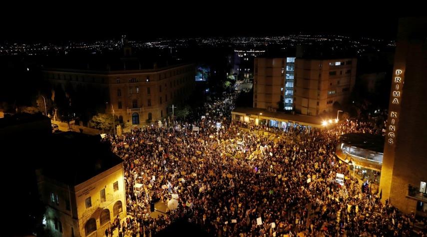فلسطين المحتلة- الكوثر: خرج أكثر من 10 آلاف مستوطن للتظاهر مساء السبت في ما تقول وسائل الإعلام العبرية إنها أكبر مظاهرة ضد رئيس وزراء الاحتلال بينيامين نتنياهو منذ انطلاق موجة الاحتجاجات الأخيرة.
