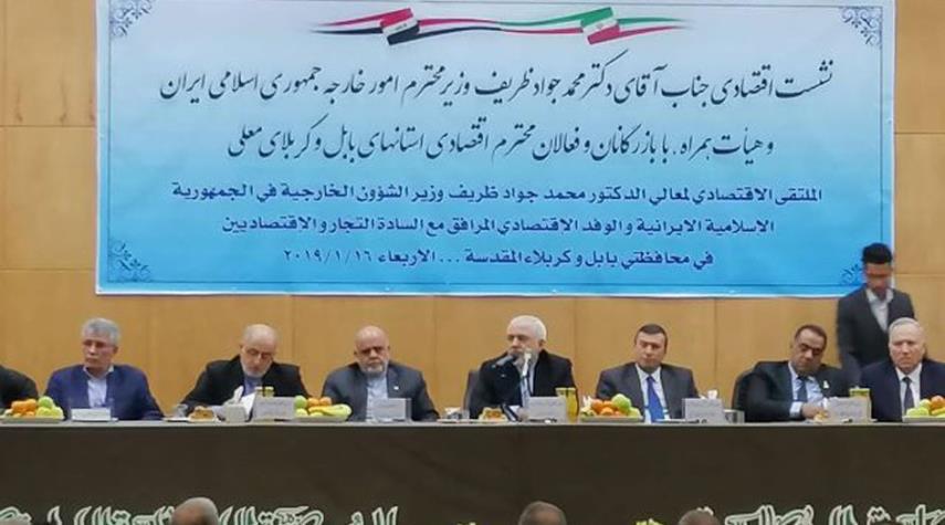 ظريف من كربلاء يعلن عن حجم التبادل التجاري بين ايران والعراق