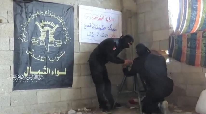 نشرت سرايا القدس مشاهد مصورة من استهداف مقاوميها لجنود العدو في "قلبة 22" شرق المقبرة الشرقية في جباليا بصاروخ موجه (107).