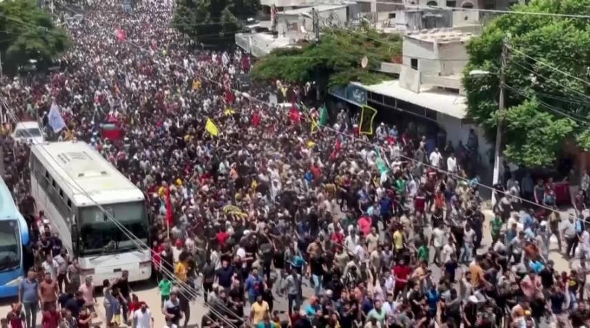 فلسطين المحتلة - الكوثر: شارك عشرات آلاف الفلسطينيين، اليوم الأحد، في موكب تشييع جنازة القيادي في حركة الجهاد الإسلامي “خالد منصور، واثنين من رفاقه، الذين استشهدوا في غارة اسرائيلية برفح جنوب قطاع غزة.