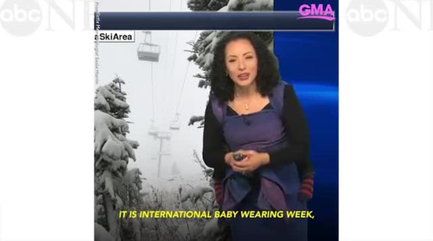 منوعات - الكوثر: في مشهد غير معتاد، اختارت مقدمة نشرة الطقس الأميركية سوزي مارتن أن تحمل رضيعها فوق ظهرها وتطلع المشاهدين على أحوال الطقس، وذلك للمشاركة في الاحتفاء بالأسبوع العالمي لحمل الرضع.