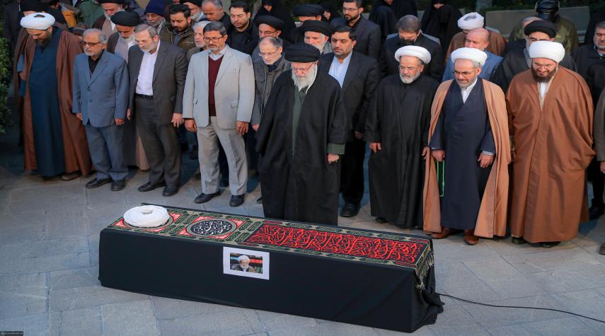 بالفيديو.. الامام الخامنئي يقيم صلاة الميت على جثمان آية الله امامي كاشاني