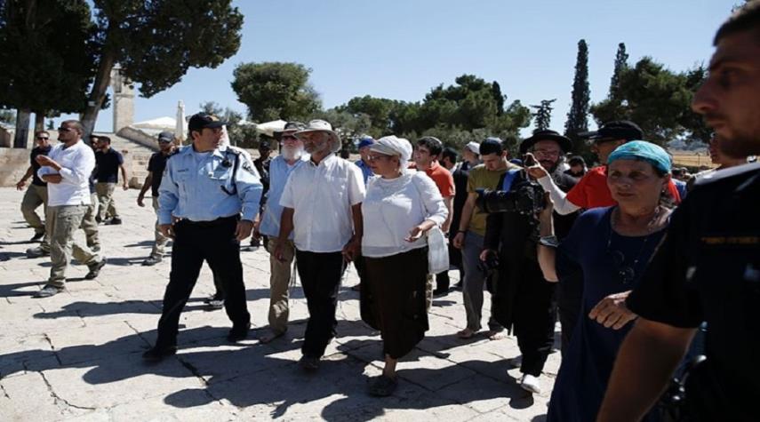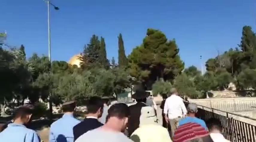 مستوطنون صهاينة يقتحمون المسجد الاقصى بحماية قوات العدو الاسرائيلي