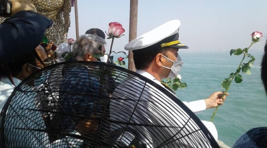نثر الزهور في مكان استشهاد 290 راكبا للطائرة الايرانية في مياه الخليج الفارسي