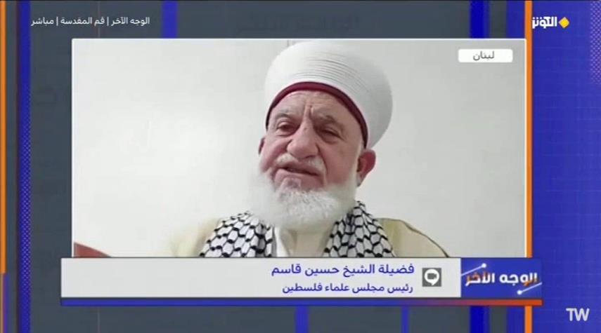 اعتبر فضيلة الشيخ حسن قاسم رئيس مجلس علماء فلسطين أن فلسطين تظل قضية حيّة في وجدان الأمة التي أنجبت أبطال المقاومة ورموز الوحدة، رغم المؤامرات والتواطؤ من بعض الأنظمة، وذلك خلال مشاركته في برنامج الوجه الاخر.