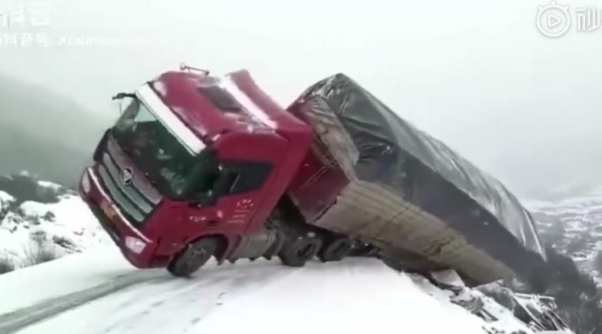 منوعات - الكوثر: انقلبت شاحنة على طريق جليدي وأوشكت الوقوع إلى الجرف في منطقة جبلية في الصين.