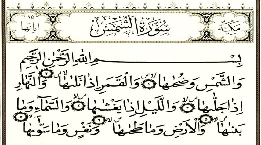 القرآن الكريم_الكوثر: سورة الشمس - سورة 91 - عدد آياتها 15