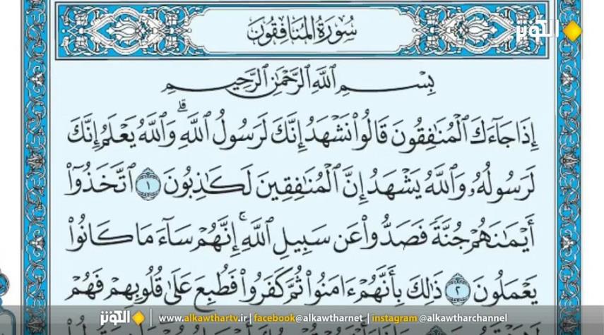 القرآن الكريم_الكوثر: سورة المنافقون - سورة 63 - عدد آياتها 11