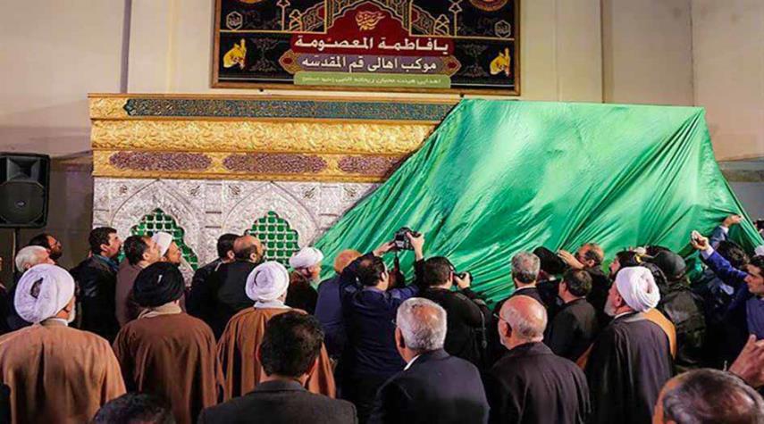 ايران – الكوثر: ازيح في مدينة قم الايرانية الستار عن الشباك الجديد لضريح شهداء الطف عليهم السلام وسط مراسيم حاشدة حضرتها شخصيات رسمية وشعبية وممثلين عن المرجعيات الدينية.