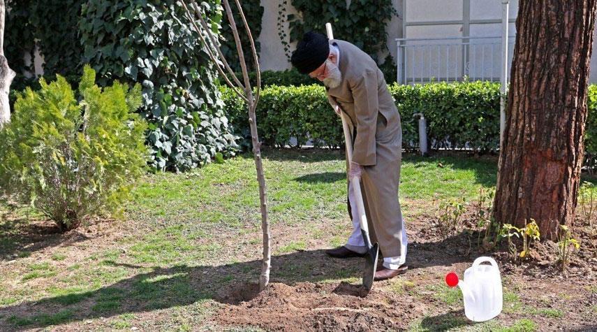ايران_الكوثر: غرس قائد الثورة الاسلامية الامام علي الخامنئي شجيرتين في ساحة مكتب سماحته وذلك بمناسبة يوم غرس الاشجار و أسبوع الموارد الطبيعية اليوم .