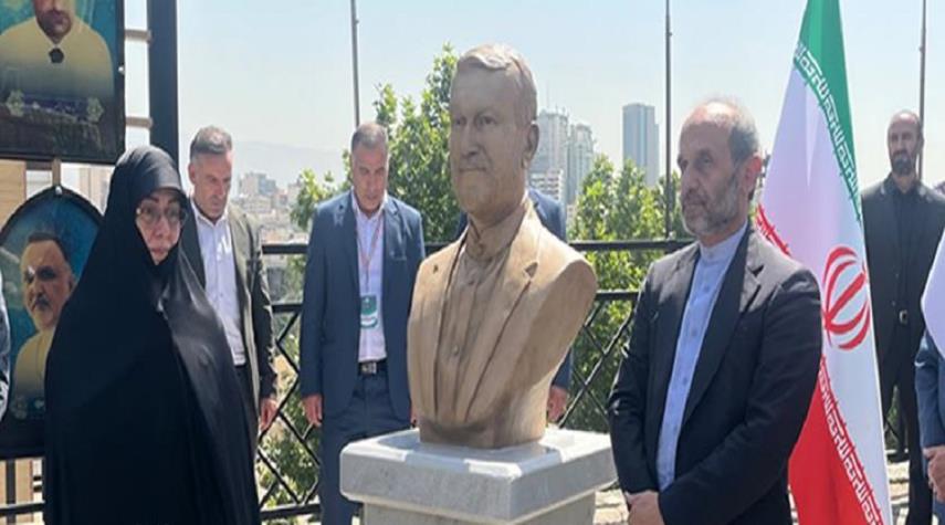 ازاحة الستار عن تمثال لوزير خارجية المقاومة "الشهيد امير عبداللهيان" في منظمة الاذاعة والتلفزيون الايرانية