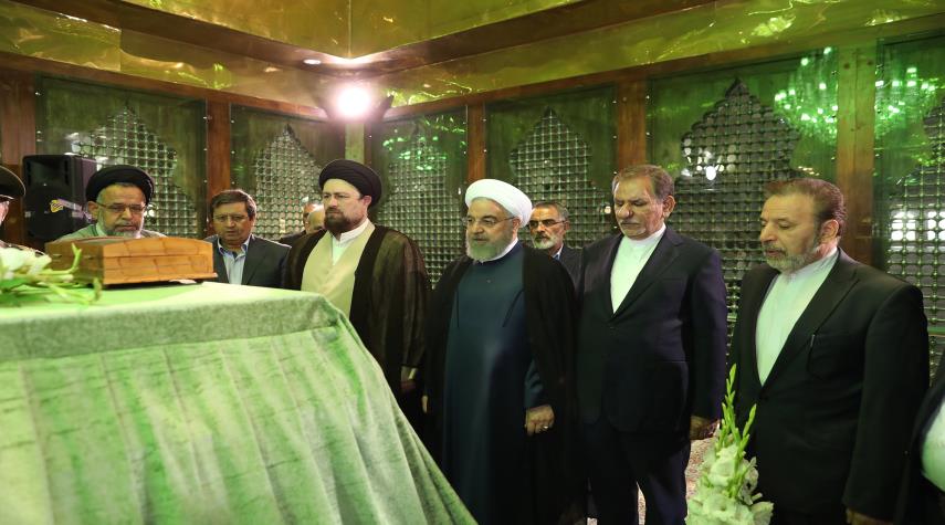 ايران - الكوثر: زار الرئيس الايراني حسن روحاني وأعضاء الحكومة مرقد الامام الخميني (قدس) في طهران، صباح اليوم السبت، بمناسبة فعاليات أسبوع الحكومة.