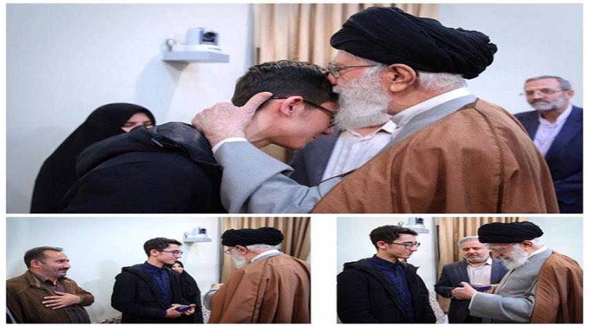 ايران_الكوثر:استقبل قائد الثورة الاسلامية الامام علي الخامنئي اليوم الاحد لاعب الشطرنج الناشئ آرين غلامي الذي كان قد امتنع عن خوض مباراة مع لاعب من الكيان الصهيوني.