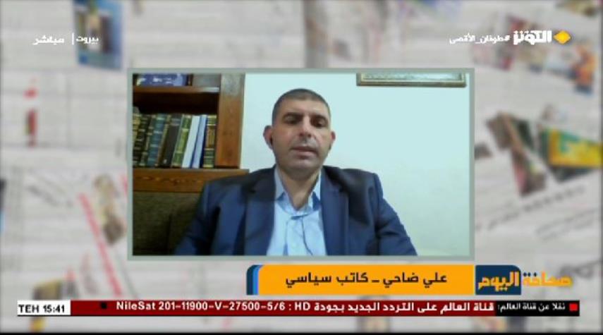 خلال مشاركته في برنامج "صحافة اليوم" تحدث الباحث السياسي الاستاذ "علي ضاحي" عن جهوز ية المقاومة للقيام بما يلزم ماقبل العدو الصهيوني، واعتبر ان الميدان هو الي يتحكم بالمعادلات.