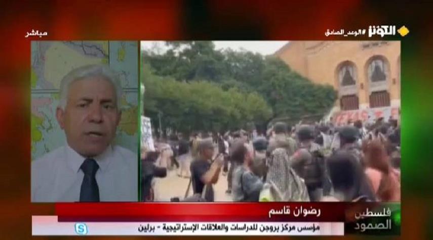 تحدث مؤسس مركز بروجن للدراسات والعلاقات الاستراتيجية رضوان قاسم امس الخميس خلال مشاركته في برنامج فلسطين الصمود عن"العدوان على غزة.. وإعادة فلسطين إلى مكانتها العالمية"