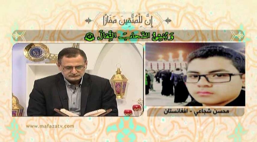 إن للمتقين مفازا – الكوثر: تلا القارئ الأفغاني "محسن شجاعي" تلاوته حسب القرعة من سورة الرعد في الليلة الحادية والعشرين من المسابقة القرآنية الرمضانية على قناة الكوثر الفضائية "إن للمتقين مفازا".