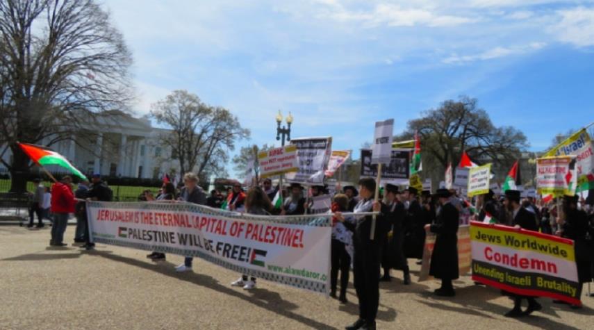 اميركا-الكوثر: تظاهر مئات اليهود الأرثوذكس، أمام البيت الأبيض، احتجاجا ضد توقيع الرئيس الأمريكي، دونالد ترامب، قرار اعتراف بلاده بـ"سيادة" الاحتلال الاسرائيلي على مرتفعات الجولان السورية.