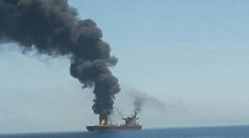 شاهد بالفيديو.. المشاهد الأولية لتفجيرات ناقلتي النفط في بحر عمان