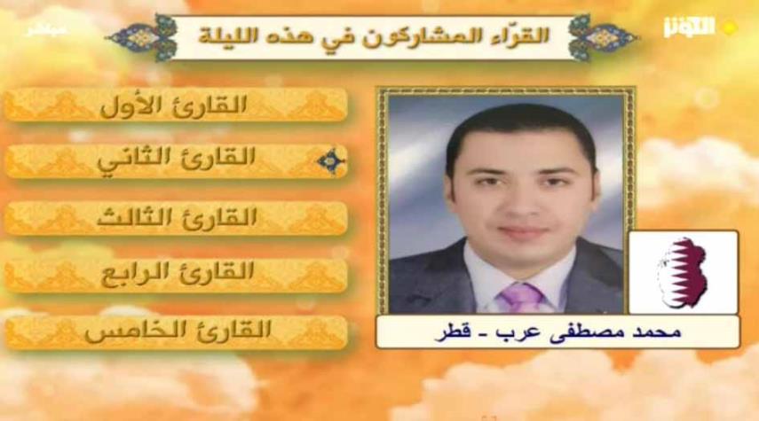 تلاوة القارئ المشارك من قطر في الامسية الخامسة من مسابقة "إن للمتقين مفازا"