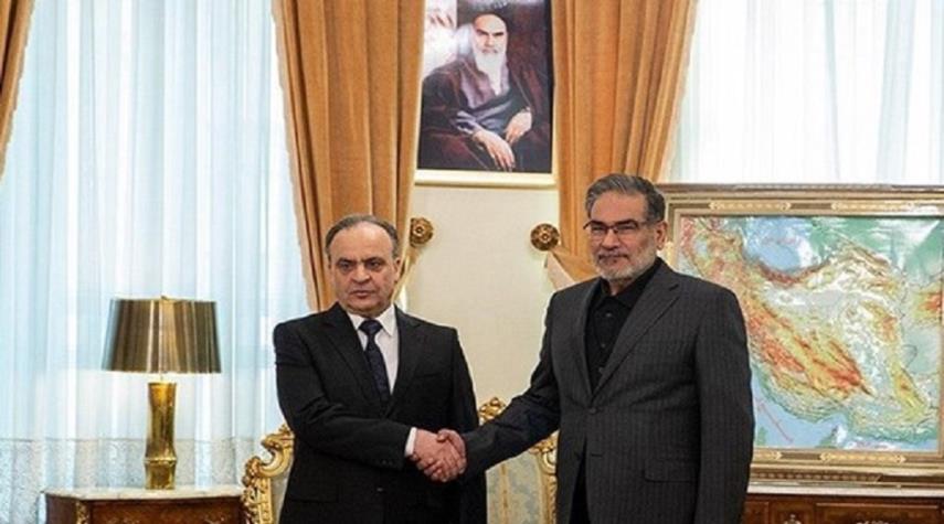 ايران - الكوثر: استقبل امين المجلس الاعلى للامن القومي الايراني علي شمخاني في طهران اليوم الاثنين رئيس الوزراء السوري عماد خميس.