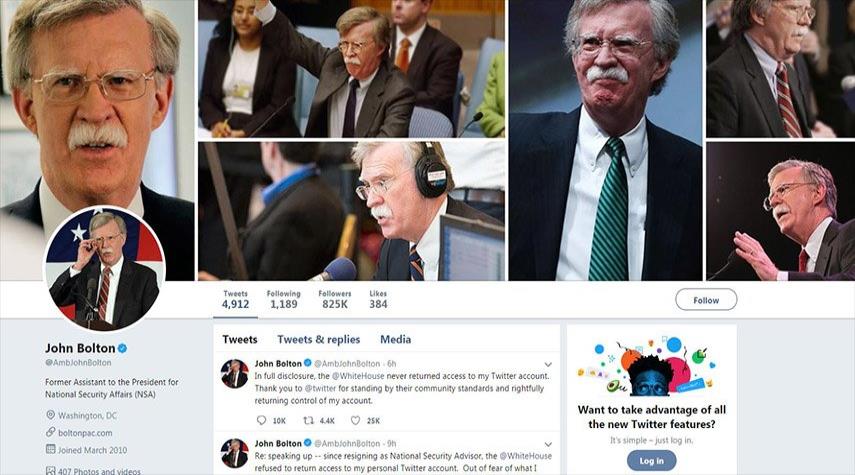 بولتون: 'تويتر' أطلق سراح حسابي من سيطرة البيت الأبيض
