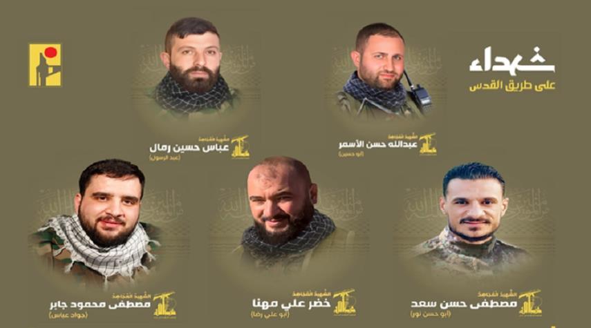 زفت المقاومة الإسلامية في لبنان اليوم السبت، 5 من قواتها شهداء على طريق القدس