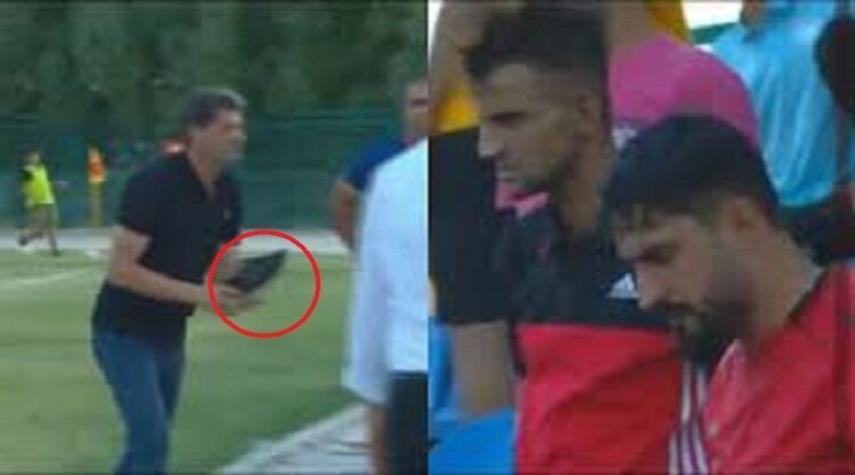 شاهد بالفيديو... مدرب يضرب مشجع بحذائه بالدوري العراقي !!