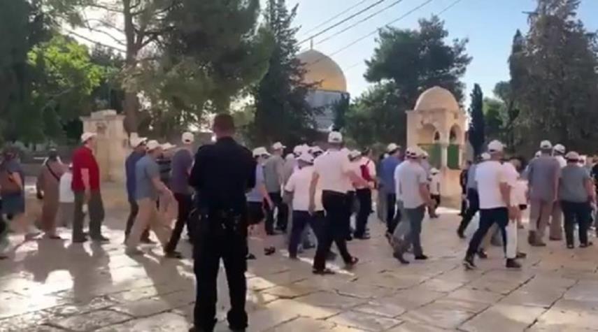 شاهد بالفيديو.. مئات المستوطنين يقتحمون باحات المسجد الاقصى المبارك