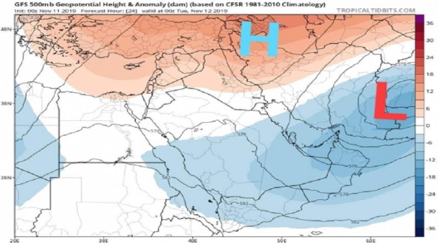 العراق_الكوثر: بدأ المنخفض الجوي المرتقب تأثيره بالدول المجاورة، ليصل الى العراق في منتصف الاسبوع الحالي.