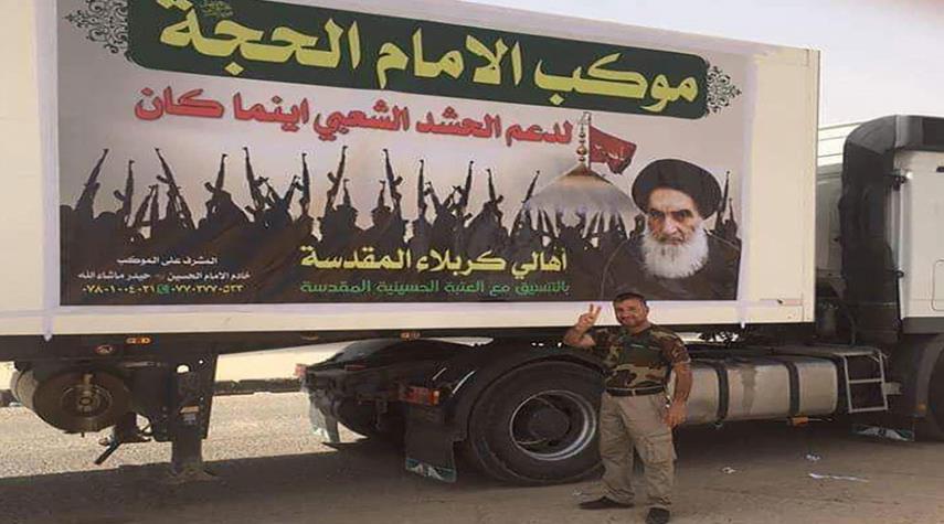 العراق-الكوثر: اعلن موكب الامام الحجة عليه السلام للدعم اللوجستي في العراق عن تسيير قافلة دعم جديدة الى ساحات القتال، فيما اكد ان ما قامت به مجاميع داعش الإرهابية من اعمال إجرامية بحق عدد من العاملين في مجال الدعم اللوجستي لن تثنيهم عن مواصلة دعمهم للمقاتلين المرابطين على السواتر.