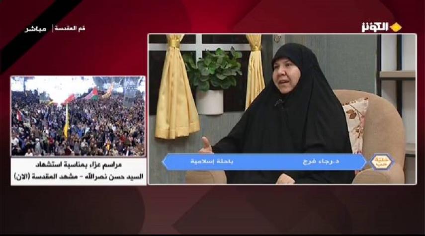 " على هامش استشهاد سيد المقاومة الأمين العام لحزب الله السيد حسن نصرالله ، تحدثت الباحثة الإسلامية الدكتورة رجاء فرح " ضمن مشاركتها في حلقة الأمس من برنامج خلية حب عن الشهادة ومراتب الشهيد " .