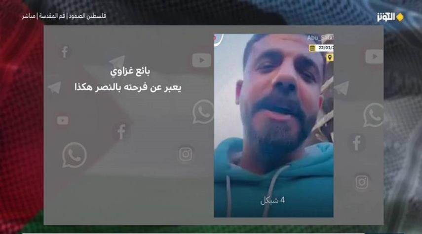 بائع غزاوي يعبر عن فرحته بالنصر بطريقة فريدة | فلسطين الصمود