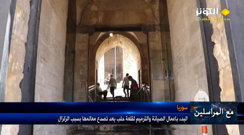 مع المراسلين... البدء باعمال الصيانة والترميم لقلعة حلب بعد تصدع معالمها بسبب الزلزال