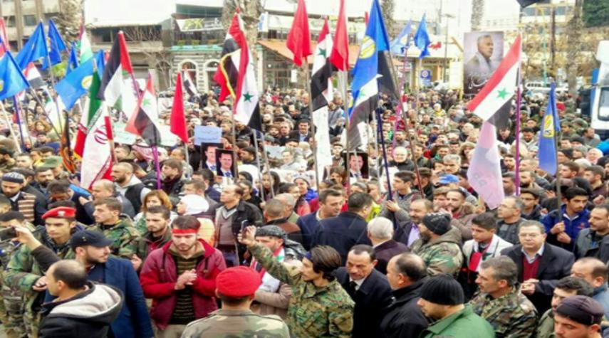 بالصور..جماهير حمص تندد بالعدوان الامريكي واغتيال سليماني والمهندس