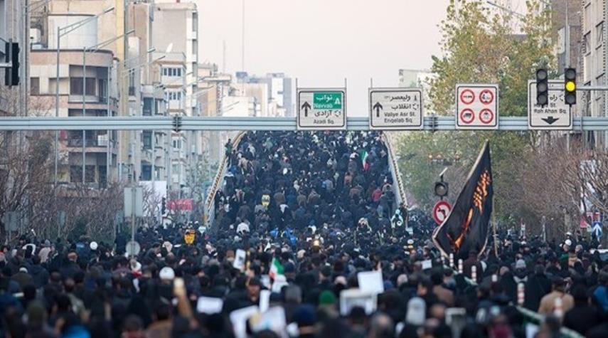 شاهد..سيل بشري بطهران لتشييع جثمان الشهيد سليماني