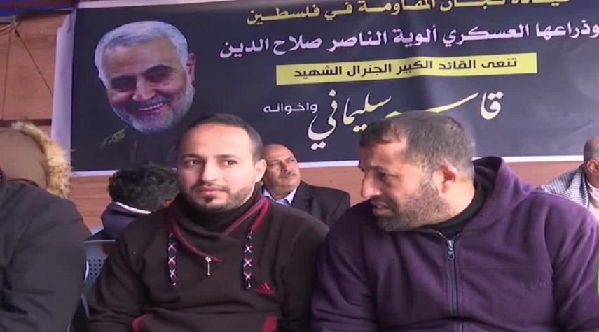 شاهد بالفيديو..إقامة مجلس عزاء للشهيد سليماني في غزة