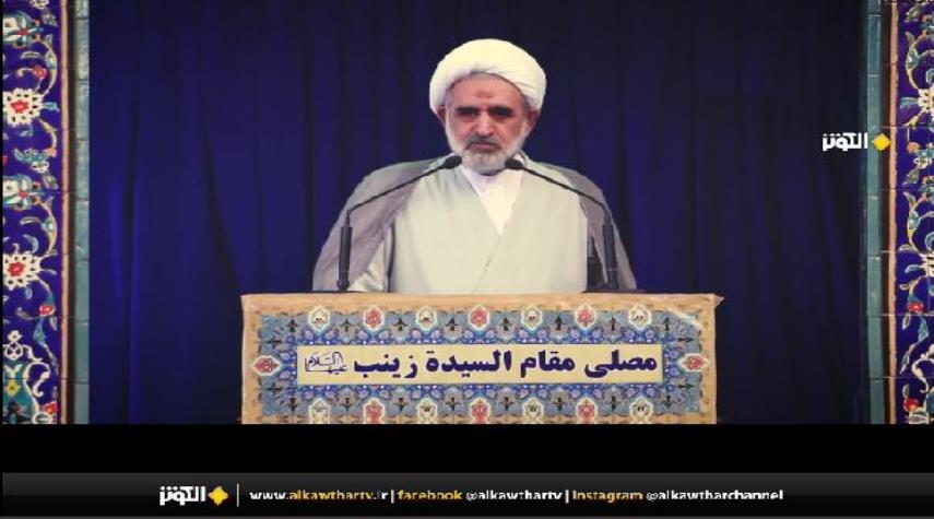 نهج القائد - خاص الكوثر: رد ممثل الإمام الخامنئي دام ظله في سورية سماحة حجة الإسلام والمسلمين الشيخ حميد الصفّار الهرندي دامت توفيقاته على محاولات بثّ الفُرقة بين أبناء الأمة الإسلامية من مصلى مقام السيدة زينب عليها السلام